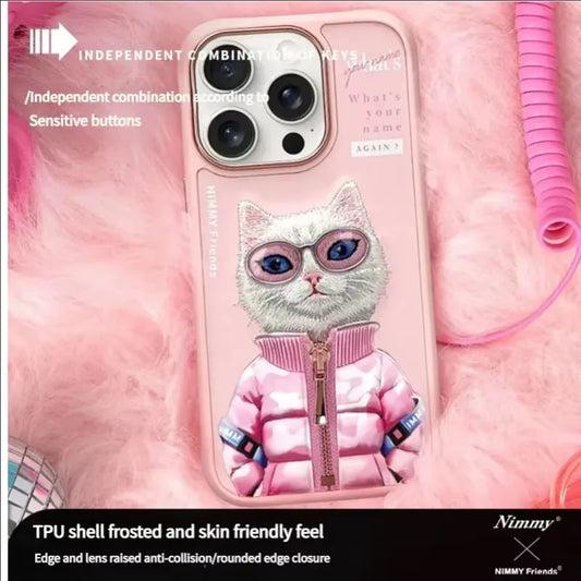 Nimmy 3D Embroidery Design Back Case Mobile Cover for Apple iphone 16, 16Pro & 16 Pro Max Soft Slim Protective Shockproof with Anti-Scratch Microfiber Lining (Pink, Gray, Black & Brown) - G
