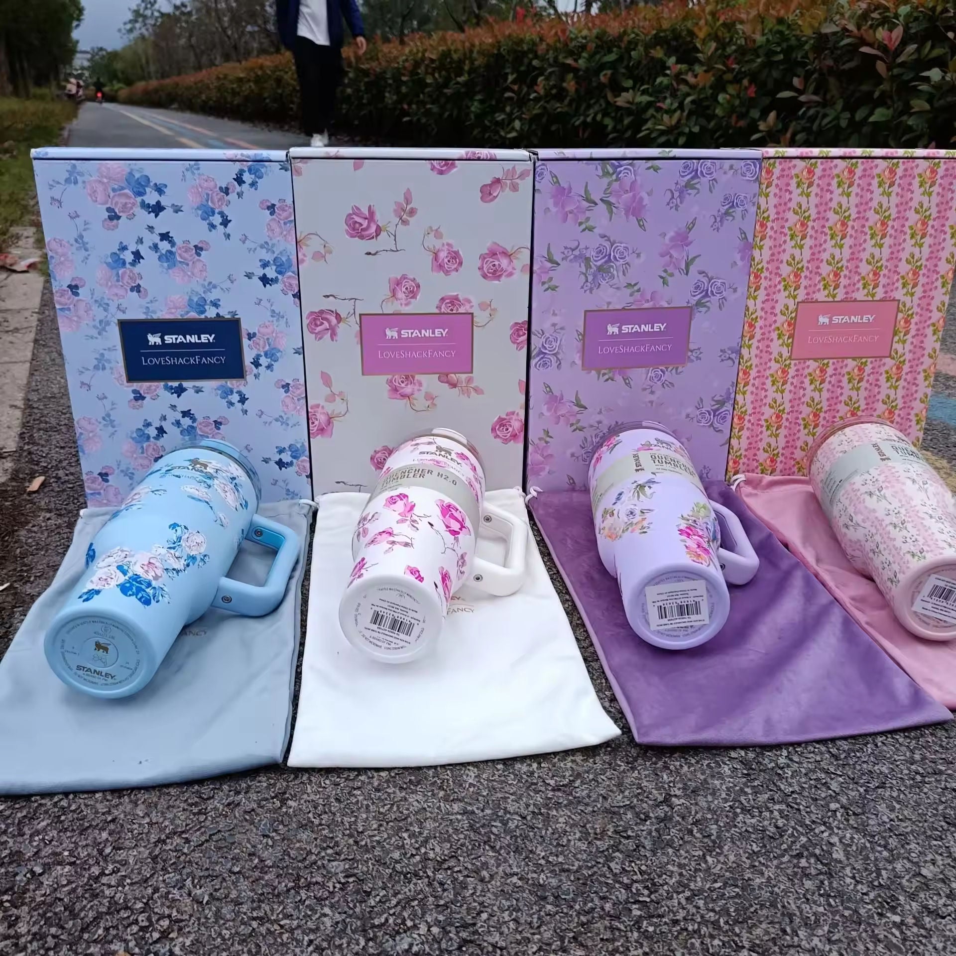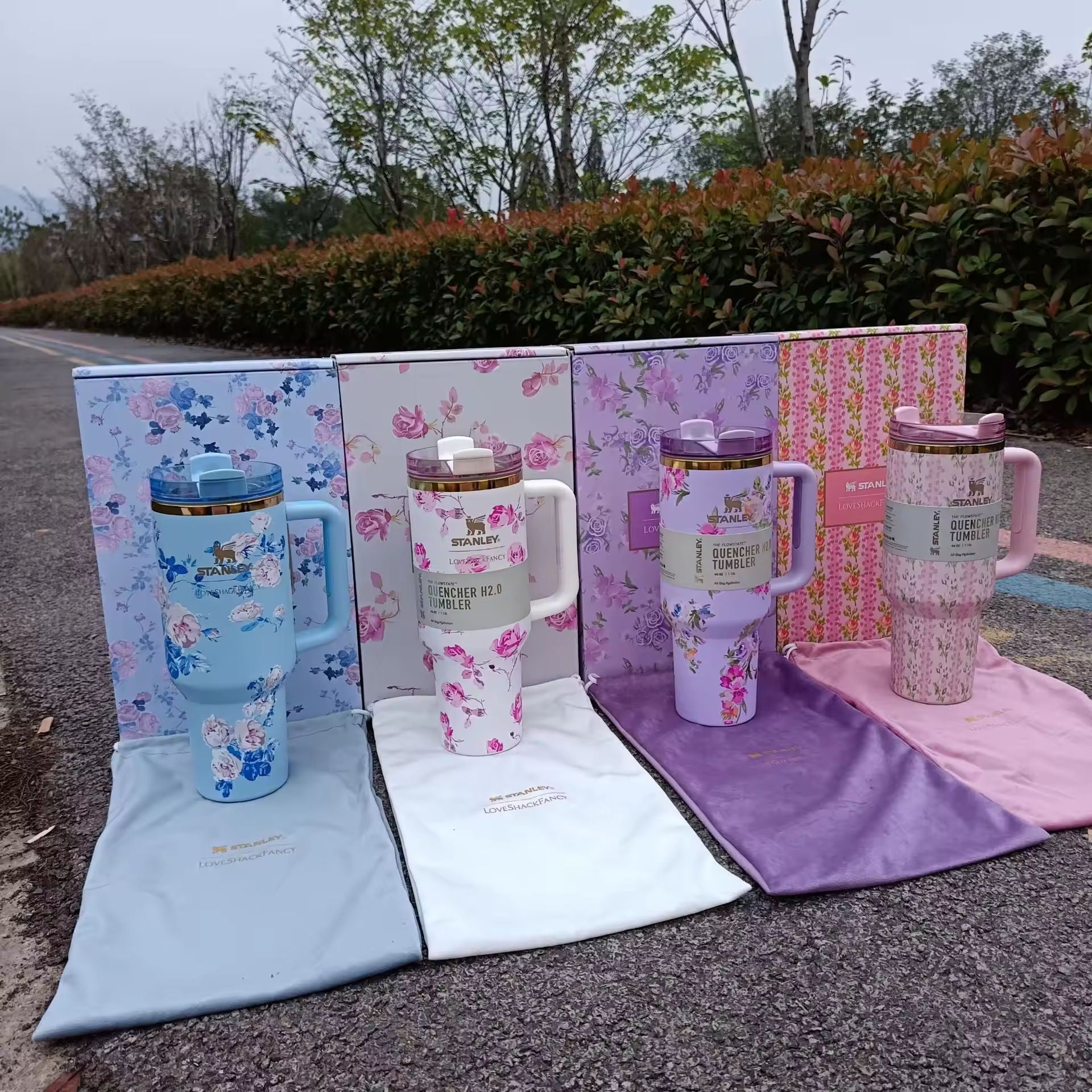 Floral Tumblers With Bow Straw Lid - The Quencher 40 OZ