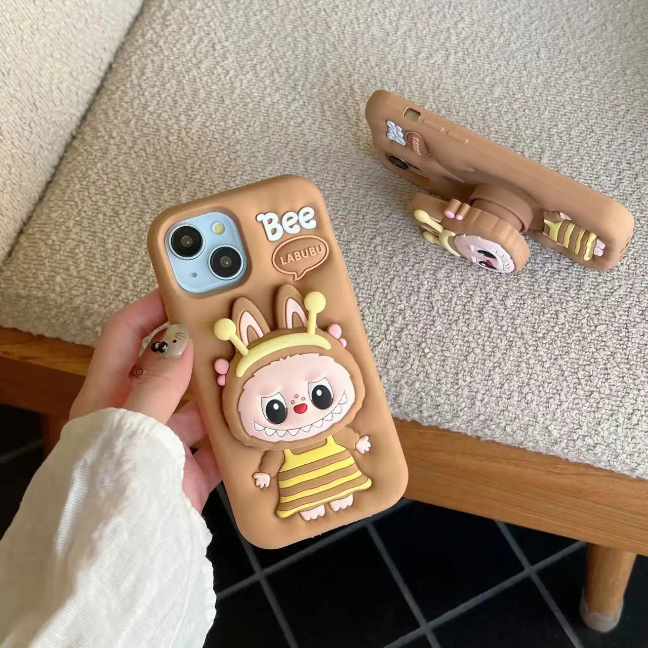 Cute Bee Cartoon Silicone Bracket Luxury Design Phone Case For iPhone